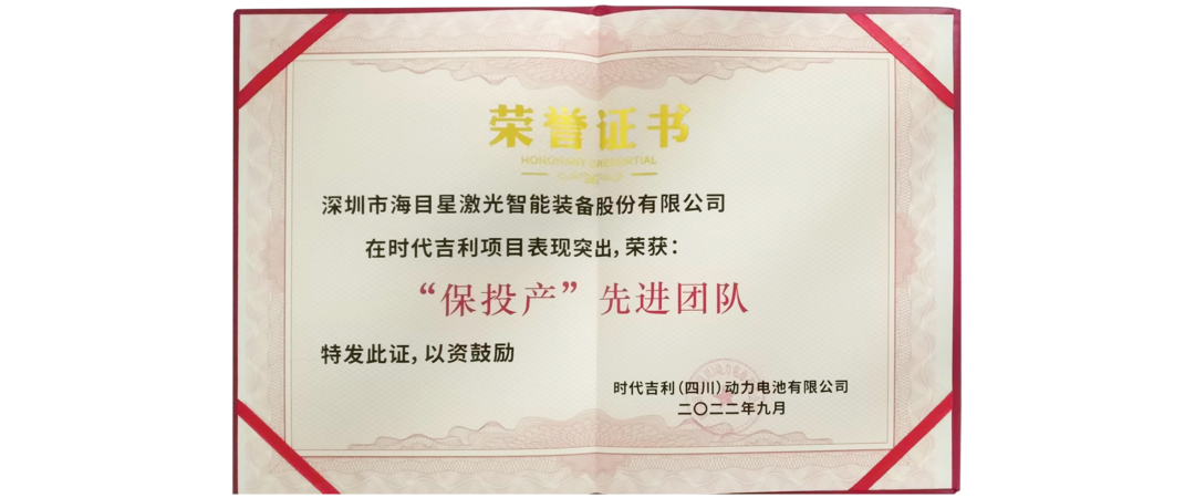 时代吉利(四川)赠予我司“保投产”先进团队荣誉证书