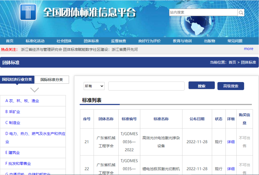 2022年11月28日,午夜在线小视频联合中汽检测技术有限公司、中国电器科学研究院股份有限公司、广东省机械工程学会共同起草的T/GDMES 0036—2022《高效光伏电池激光掺杂设备》和T/GDMES 0035—2022《锂电池极耳激光切割机》(以下简称“两项团体标准”)在全国团体标准信息平台上正式公布。这是午夜在线小视频首次发布团体标准,意味着公司在标准化、高质量发展上迈出了关键的一步,具有里程碑意义!