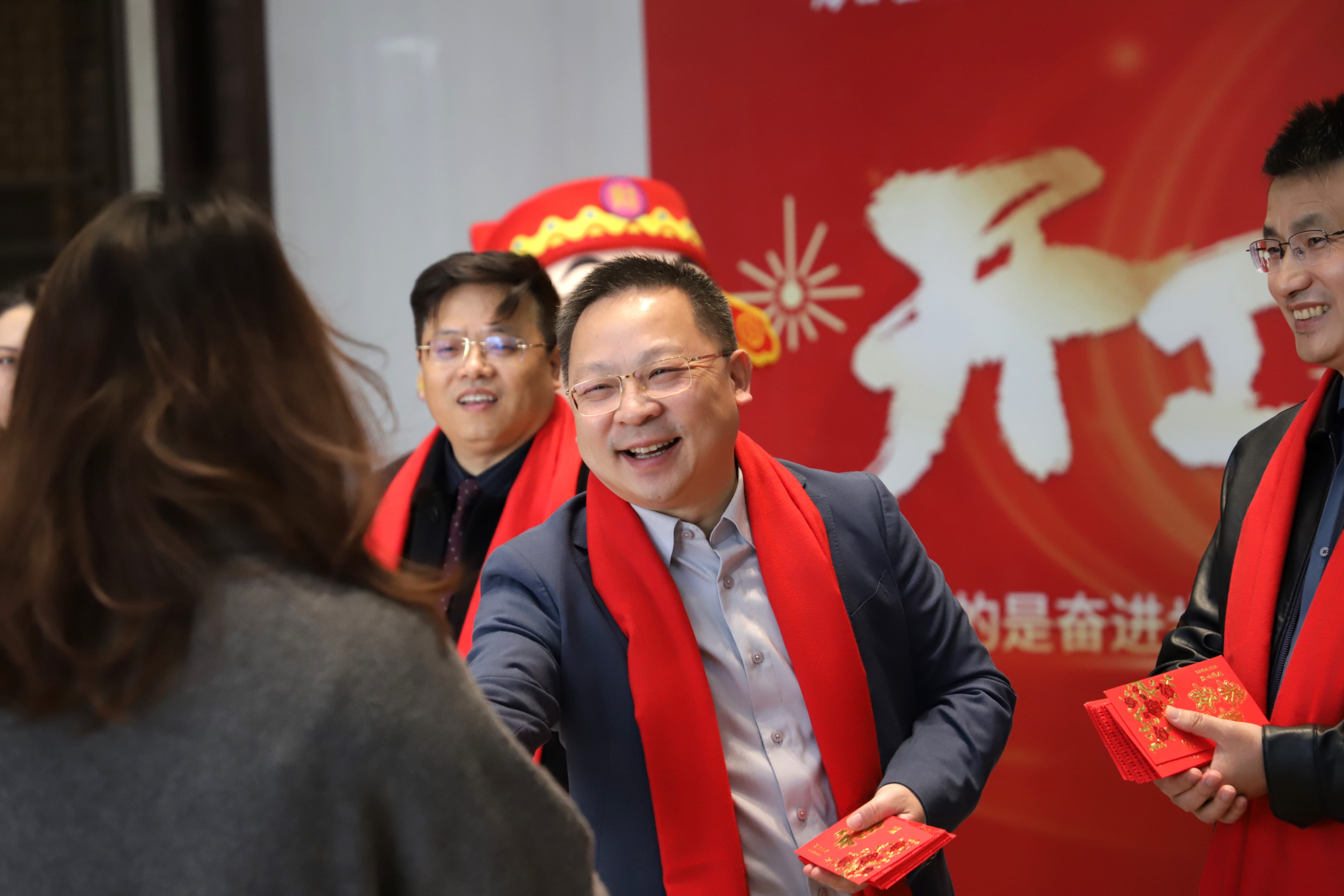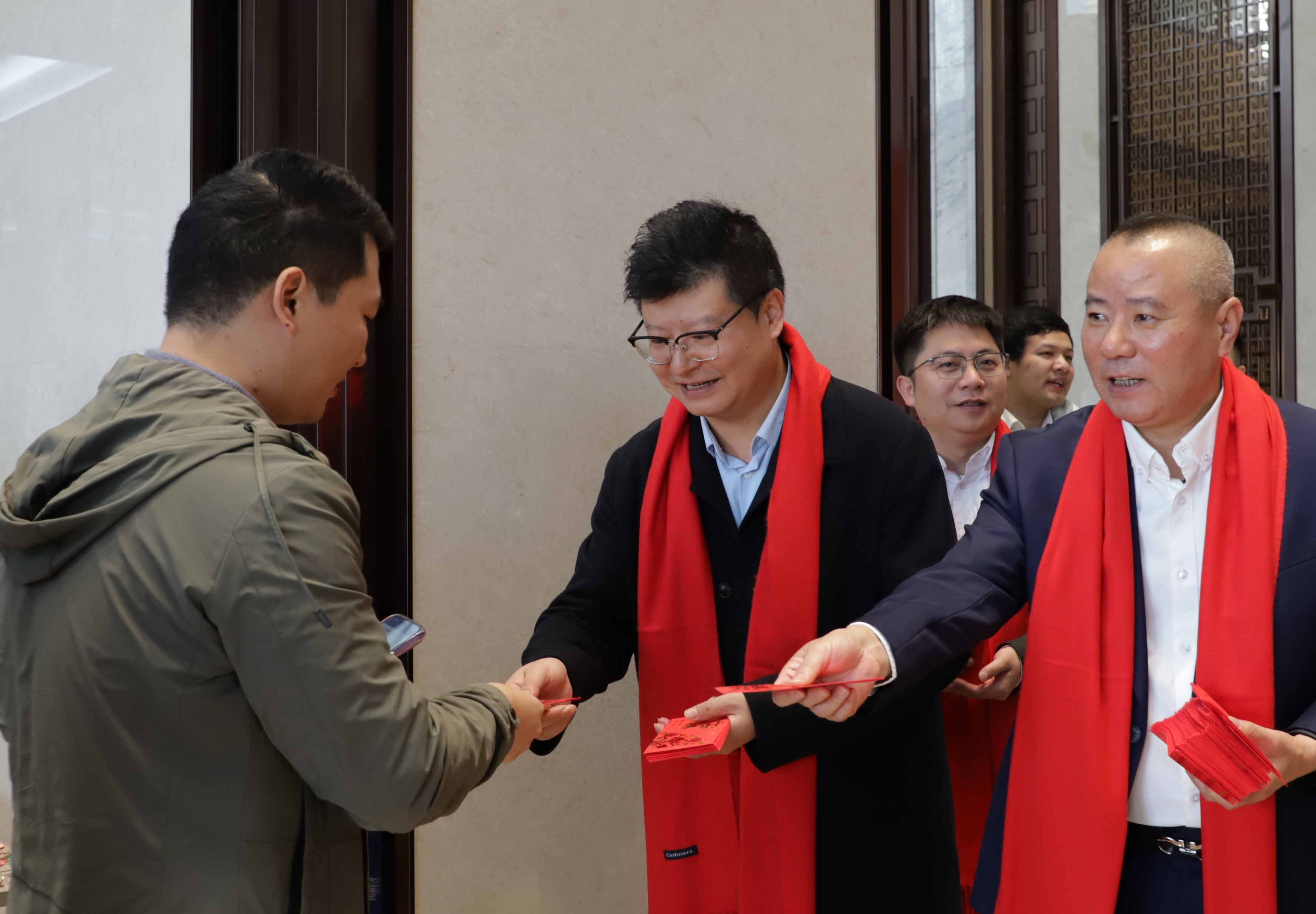 大年初八,午夜在线小视频集团洋溢在开工的喜庆氛围当中,董事长赵盛宇携高层领导一行早早等候在午夜在线小视频深圳总部一楼大厅。他们佩戴象征吉祥、福气和好运的红围巾,热情迎接每一位返回岗位的员工,并亲手送上开门大红包,祝福全体员工新的一年事业有成,续攀高峰!